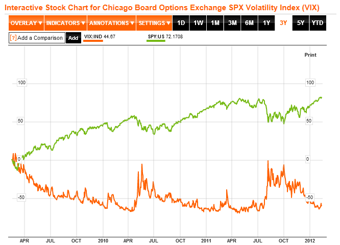 Not only that, but if we look further back to 2005-2007, the final part of the last cyclical stocks bull, the Vix oscillated in a lower range (10-15 rather than 15-20) than in the last couple of years, which at least gives the possibility that the Vix could drop beneath the apparent horizontal base shown above.