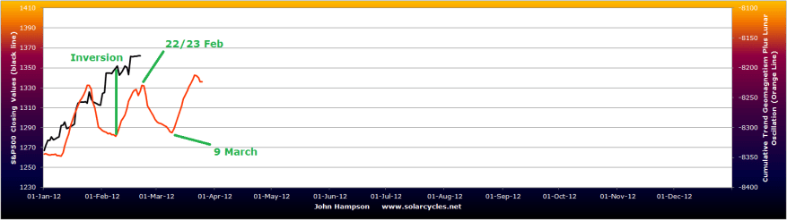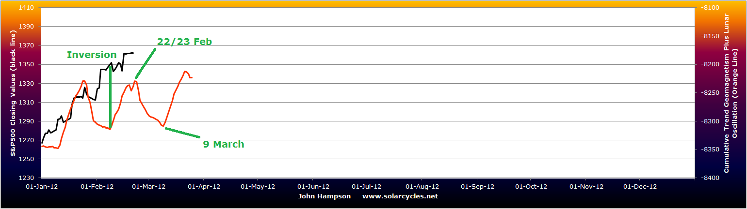 With a little more geomagnetism forecast, my model is flattening out. Ideally, I would like to see a final higher push today/tomorrow into which strength I would exit further stock indices longs, with a view to looking to buy some back if we can reach around 5% lower or so, but still being much more overweight in commodities expecting outperformance in that class going forward.