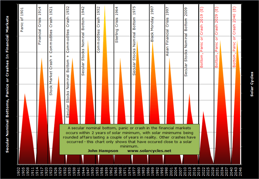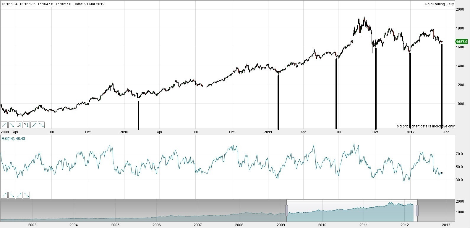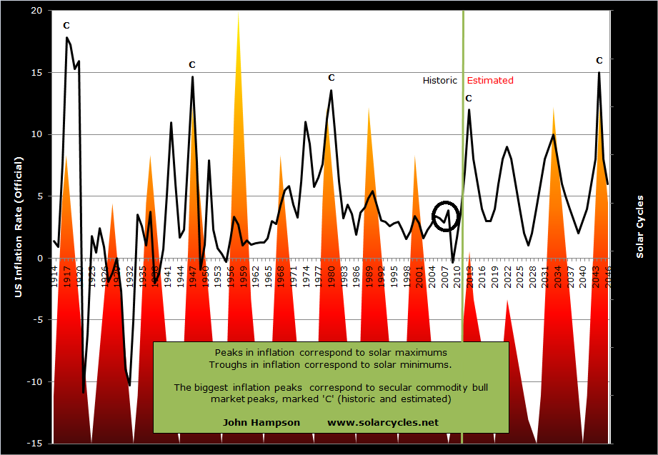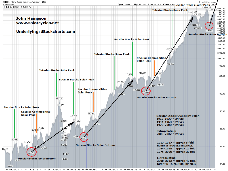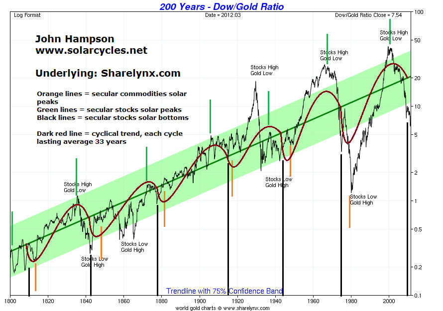 All that said, gold has been a source of great profits since I started trading, because of its enduring secular bull since 2000, and I am overweight precious metals currently, anticipating that the biggest gains are yet to come in an imminent finale. By solar cycles, the peak should be 2013, and thereafter I don’t want any gold in my portfolio – not until the next secular commodities bull in the 2030s. In short, I believe there is a final gold mania just ahead, which is a terrific opportunity for a trader to make big, fast profits, and yet, I don’t want to get stuck with gold so want to ensure I sell out before the peak. Therefore, I have a full long position in precious metals already, frontrunning what I believe to be a final mania (if you subscribe to the general ideas of Kondratieff, then this is a K-winter in which gold is the leading asset).