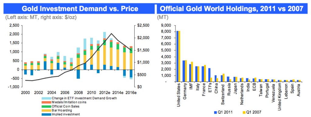 Let me start by saying that I’m not a gold bug. I don’t own any physical. In the event of a global mega-disaster I don’t want gold. The fiat system is unsustainable on current trends, but debt limits in the major developed nations are further out, circa 2030, so those buying gold as protection against its collapse are too early, in my view. Investment and central bank demand are the growth areas for gold, and I expect them to reverse once a new secular growth cycle emerges and dividend-less gold suddenly doesn’t look very appealing.