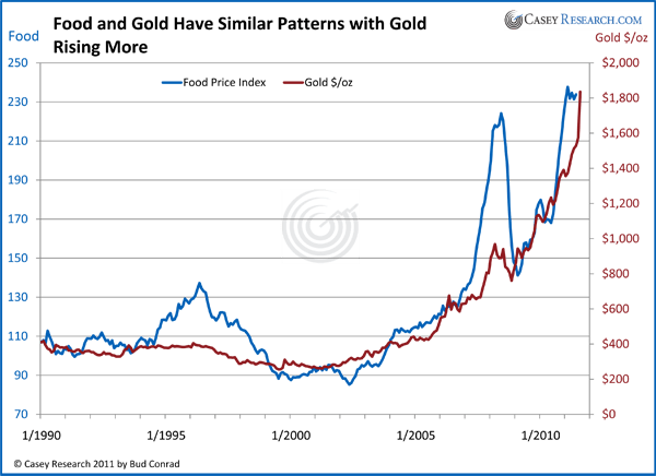 Food prices also appear to be a proxy for gold. Broadly speaking the current outlook for food prices is supported by tight supplies and increasing demand but dampened by record plantings. With trends in natural disasters still on the rise, and particulary strong in 2011, there are potential threats to the plantings and harvests, but where and on what foodstuff is hard to predict. I therefore remain exposed to agri as a whole.
