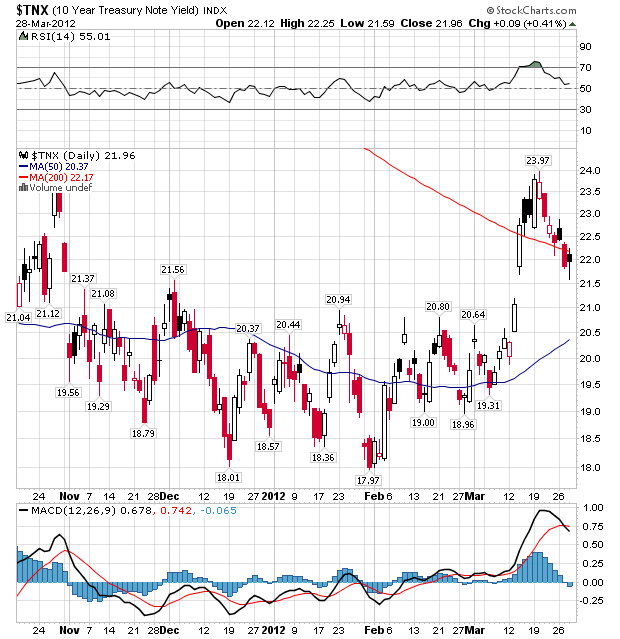 Bond yields have fallen back in the last few sessions, perhaps following Bernanke’s dovish comments, and commodities have fallen back also, with concerns over China’s growth playing. Gold now looks to have been repelled at the 200MA so perhaps needs more time to consolidate before gaining upside traction. Oil inventories were higher than expected yesterday, putting oil at the lower side of its recent range. If oil were to break downwards out of this range, then that would also suggest more time is required before commodities are ready for a momentum rally, so let’s see. Portugese CDSs dropped out of their long term uptrend, in an interesting development. Yet Spanish CDSs have not weakened in the same way. Italy CDSs are unclear.