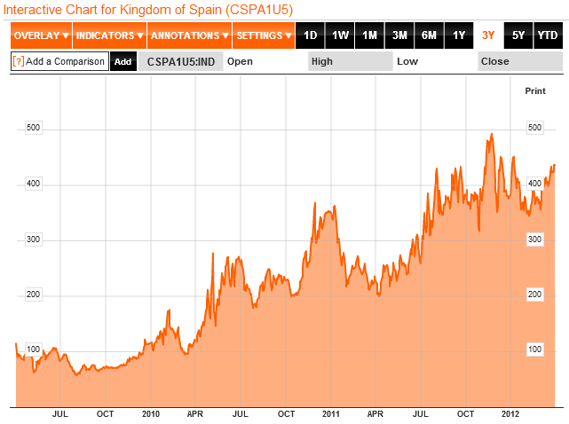 For now then, investors, particularly in US stocks, remain unconcerned about economic surprises, Spanish debt and China slowing, but this is often how it works. The bull extends as negatives grow, only for a sudden collective shift in sentiment, with participants becoming of the view that the market has moved too far, too fast. Of course, if surprises start to improve again, Spain does something to ease CDS pressures or news from China gets better, then equities and pro-risk in general could yet advance further.