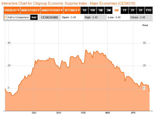 Economic Surprises for major economies finally went negative yesterday – a bearish development.