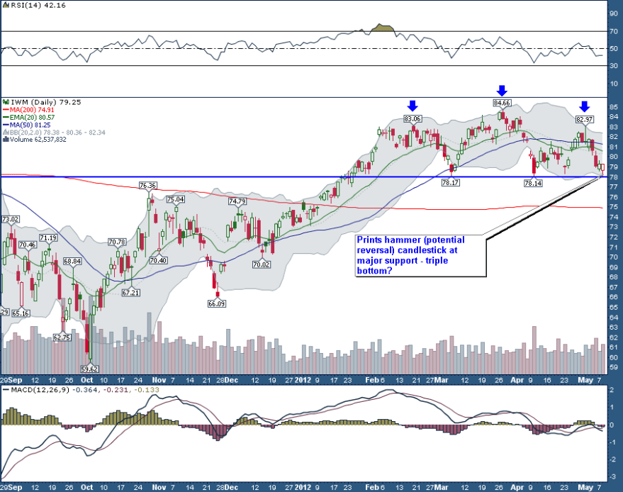 The Russell 2000 has either made a triple bottom or is playing out a large head and shoulders to a considerably lower target.