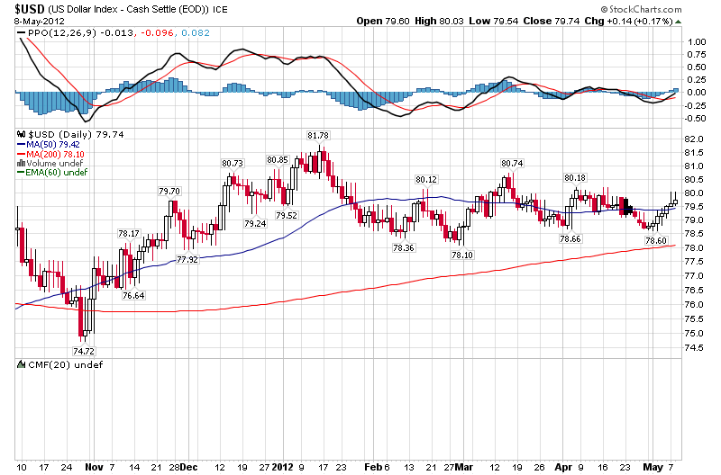 The US dollar remains in a range, despite the Euroland troubles. As yet this is not resolved.