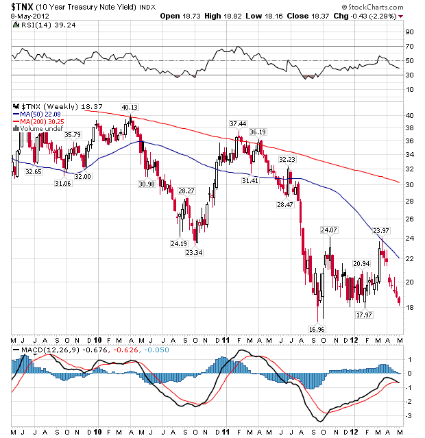 Right now, it looks like 2010 and 2011 again – mid year pro-risk retreat with Euro debt back to the fore and slowing growth. I find it hard to believe we will see the same again, as the market always likes to surprise. So what if not that? Well, the run up into the solar peak is typically one of growthflation. The mid year should be lower geomagnetism, by seasonality, which is supportive. Sunspots should continue upwards, which is supportive. And stocks generally fair well mid year in US election years. I suggest therefore that we need either a natural pick up in growth here (economic surprises ticked up for all regions yesterday but we need to break the downward trend; China and emerging markets could take over as the driver) or we need central bank assistance, such as ECB action to deflate Euroland issues again, and the Fed to replace Twist in June. But either way, I rather expect we will see a more pro-risk friendly mid-year.