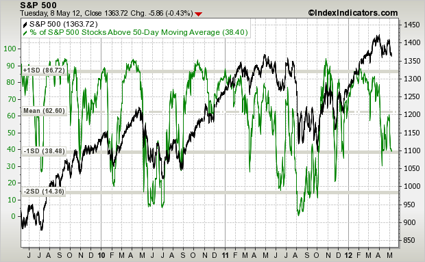 Stocks are heading towards oversold, but could also drop further yet to reach extreme.
