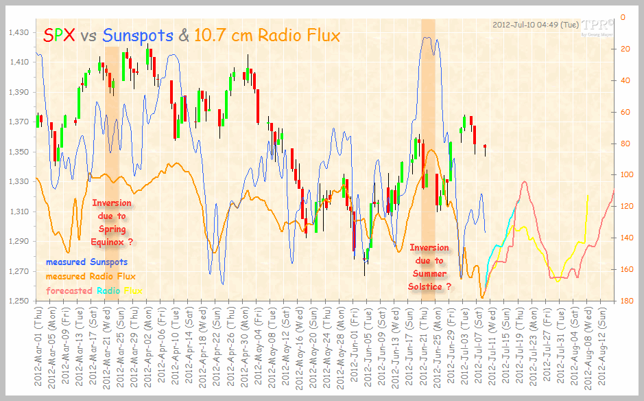 However, what I notice are temporary short-term flips in the stock market’s correlation with Sunspots or flux around equinoxes.