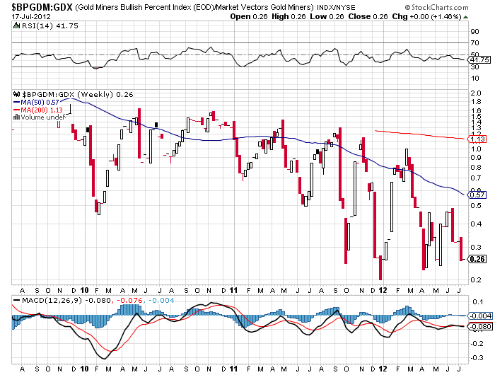 Two is a big deflationary episode. If leading indicators continue to fall or sovereign debt issues escalate to new accuteness or China’s slowdown morphs into a hard landing then we would likely see no asset escape from the sell-off, as in 2008 when gold was sold off to raise cash against other greater loss making trades. However, the technicals above reveal that gold and gold miners have already experienced a washout similar to 2008 over the past 9 months.