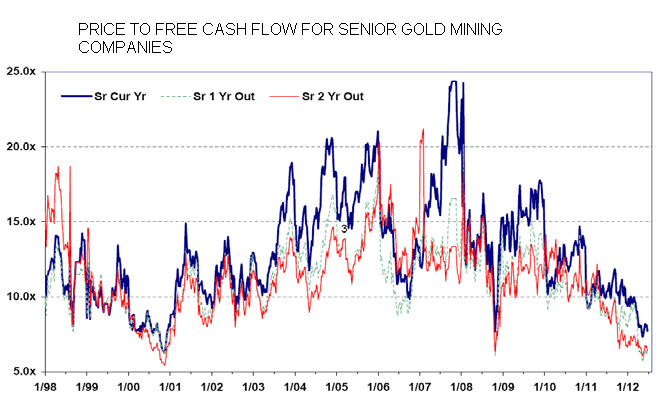 Senior gold miners are also priced at levels versus their cashflow that are the same as 2008 and 2000: