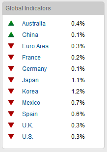 However, global leading indicators continue to languish. China trade data on Friday was particularly bad. The latest OECD readings show a precarious global economy. ECRI leading indicators for the US look reasonable. Conference Board leading indicators for the key nations are below and show a picture that is notably more negative than positive: