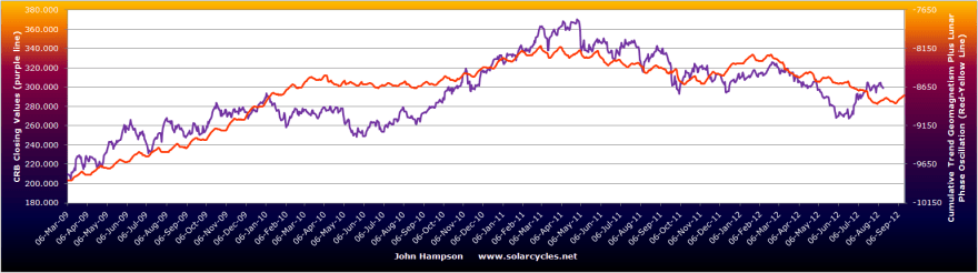 For now, I am looking once again to lunar phasing for a near term position tweaking. Namely, the new moon is this Friday, which suggests positive pressure into the end of this week, supported by tame geomagnetism. If pro-risk pushes higher into this Friday, I may trim back my overall pro-risk positions again, and will notify you if so. However, I will be looking for evidence of overbought/overbullish and technical resistance. I will also be looking at developments in leading indicators or central bank  action between now and then. September and October is typically a more difficult time for pro-risk, however this has not historically applied in a US election year, plus this is the run-up into a solar peak.