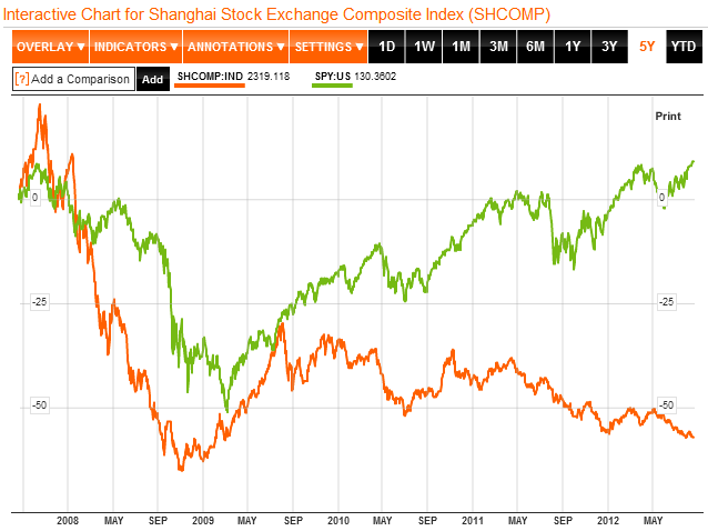 …for US equities? As we stand, the SP100 already made new highs. Apple has since broken upwards to new highs. The Nasdaq, Dow and SP500 are all back at their March 2012 highs (the SP500 including dividends is now at an all time high). Either it’s time to get out of all US stock indices longs, or the melt up is just about to begin. In stark contrast to the US stock indices predicament, the Chinese stock index is at 3-4 year lows.