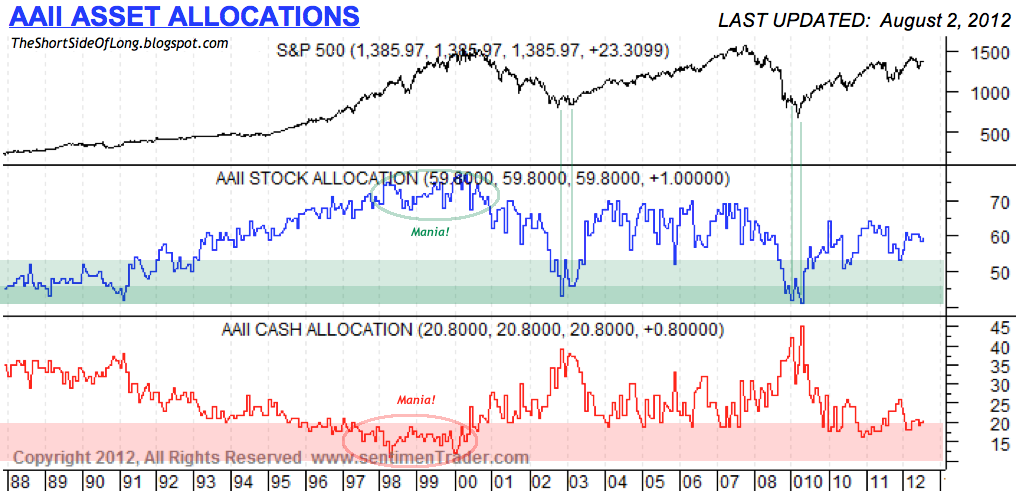 I’ve noticed your post stated that there is apparently a “pile of investor cash sitting on the sidelines”. I believe these are market phrases usually seen at the top of bull markets. I personally have noticed the phrase “cash on sidelines” and “plenty of liquidity in the system thanks to QE & LTRO” commonly used on CNBC all the time in recent months. IT is as if everyone parrots everyone else for a cracker.