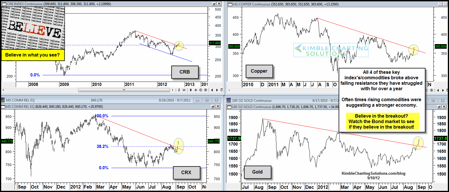 The US dollar broke down beneath rising support, and the Euro broke up. That’s supportive for commodities.