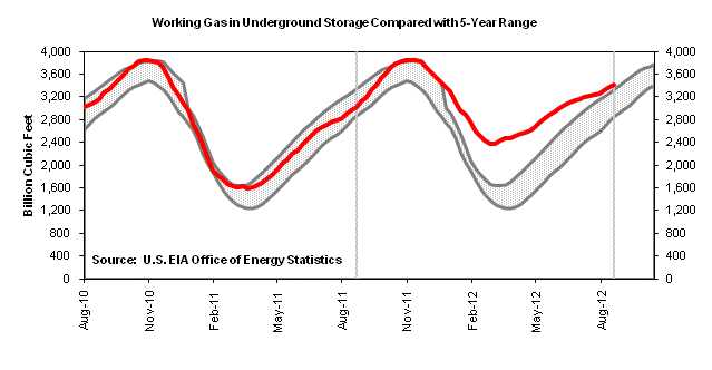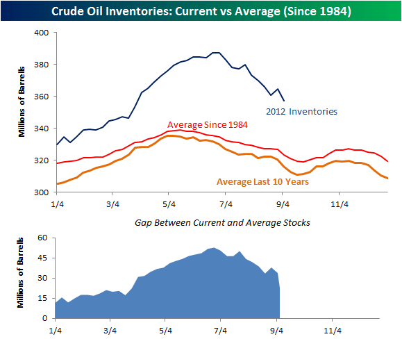 Gas and crude oil inventories continue to fall back towards their longer term averages. Although both are still out of their historical ranges, the trend in both is of a shrinking of stocks.