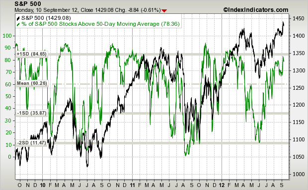SP500 stocks above 50MA can also push a little higher, and oscillate there for a period.