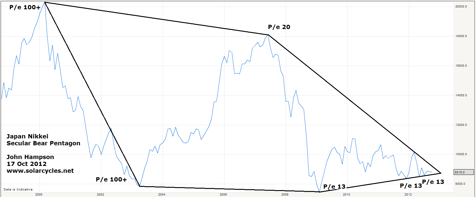 In terms of Japanese equities I believe it is more likely they can further their rounded bottom. The historic extreme undervaluation for real estate and historic extreme overvaluation for the Yen is also supportive of a wider risk/safety inflation/deflation asset reversal. I maintain we are in the transition years from global secular stocks bear to global secular stocks bull and K-winter to K-spring, and that this is also supportive.