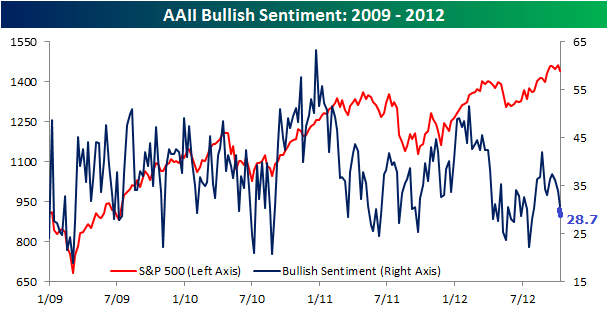 Technically pro-risk has been pulling back en masse, but without obvious recipients, as treasury bonds, corporate bonds and gold have not advanced. I’m not quite sure what to make of that development, but we will find out soon. As per my last post, I believe that the next move will be a counter rally in pro-risk and there is some evidence that we may be reaching the kind of bearishness that may initiate a snapback: