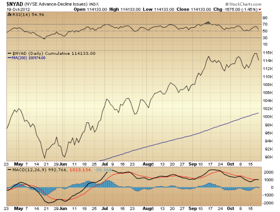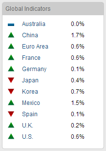 OK, to the markets. This week’s data looks like this. US earnings are now overall slightly negative year on year but slightly above pre-season expectations (which was for worse). US economic was data overall mixed, but Economic Surprises are still strong (now standing at +51.7). Conference Board global leading indicator data has generally disappointed for this month. Australia -0.8 (last month zero), Eurozone -0.4 (last month +0.5), China +0.3 (last month +0.7). That data is a warning flag because the global improvement seen in September over August may be being reversed. Eurozone PMI came in lower than expectations and sets the scene for a negative GDP reading.