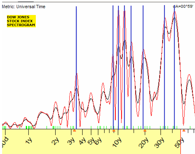 Since the 1989 Nikkei peak, the index has gradually been making what appears to be a rounded bottom. Recall the 19 year cycle showing up in the Dow Jones stock index spectrogram? Well, from the Nikkei peak to the nominal low to date was 19 years. Just speculation that it may have relevance here, but if the rounded bottom continues its trajectory then that nominal low of Oct 2008 should hold.