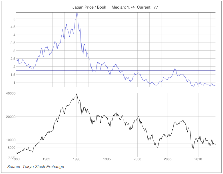 So, it is interesting to see Japanese stocks at a p/b ratio of just 0.77.
