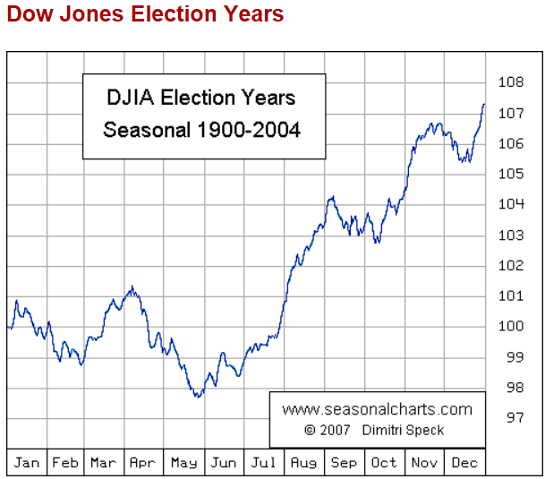 Regarding US stocks, if we cross reference the closest percentage correlated periods from history in terms of chart action to date together with presidential election seasonality (i.e. periods into the US election like now) as well as previous secular stocks bears / secular commodities bulls periods then the closest mirrors from history are shown below: