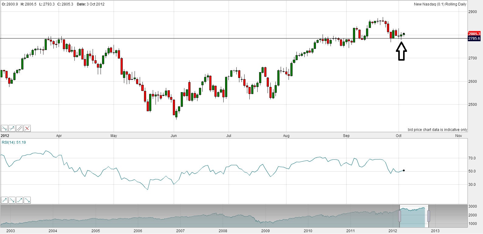 Yesterday during the US session I was watching the support/resistance line on the Nasdaq shown: