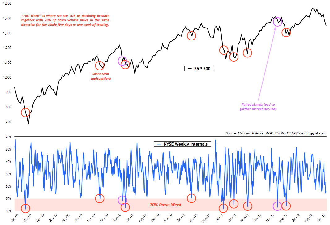 With all that in mind, you still won’t see me buying equities. While short term oversold signals are fleshing in variety of areas, the market is not anywhere close to oversold from the long term perspective. The VIX does not even remotely suggest investors are in panic. Major sentiment survey and cash level indicators show that retail investors aren’t too afraid by the current correction. I personally expect much lower prices over the coming quarters as a long term investor with a recession and a drop in earnings well into 2013/14 area.