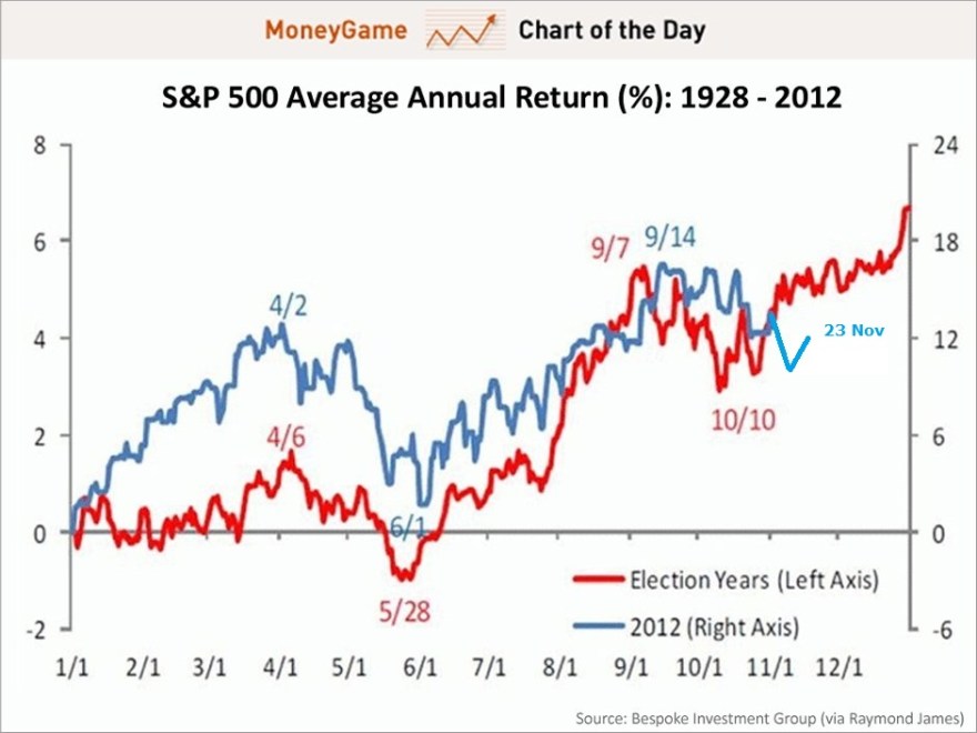 To counter that, we have down pressure into next week’s full moon. Today, the Friday after Thanksgiving, has a positive historical seasonality, but not Monday. Given the v-bounce in US stocks, I believe there are several reasons why the market may pull back next week, and the question is whether this produces a dynamic ‘W’ base from which to then rally into year end, or whether the market drops lower than the mid-November low and makes a positive divergence (or even lack of positive divergence).