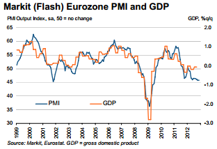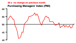 Next are the Markit PMIs released this week for the Eurozone, USA and China. The Eurozone remains weak in this leading indicator, but USA and China both show pick up and positive readings.