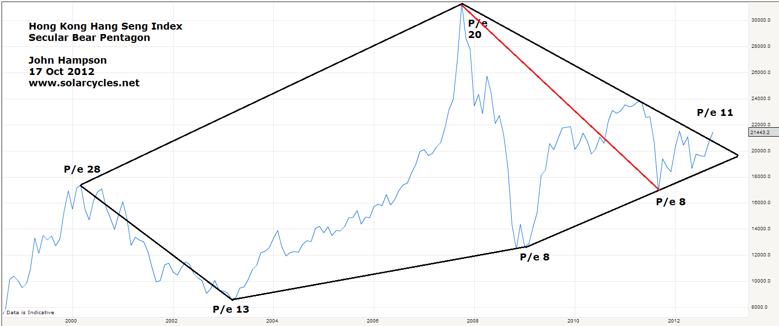 Ditto for the Hang Seng here, ending with a p/e of 8: