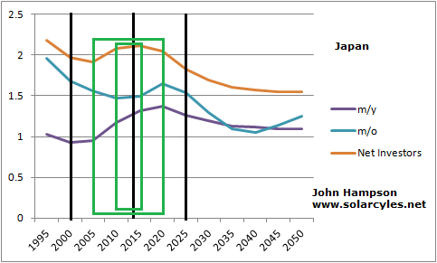 The next chart shows the middle/old trend for Japan, which is a tailwind out to 2020, like the middle/young for this country.
