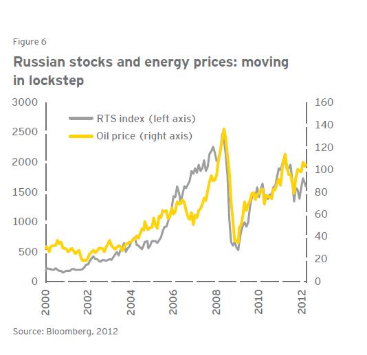 Let me draw all this together. Russian stocks are very cheap by all three valuation measures, both compared to other countries and by their own history. The Russian stock index is generally a play on energy prices and a high beta play on global growth. Global growth and energy prices correlate fairly well, so we could simplify it and say that if global growth can be sustained here, then Russian stocks are an attractive proposition at this point. Alternatively, if energy prices can rally here (which they tend to do as late cyclicals taking over from stocks), then Russian stocks may equally be an attractive proposition.
