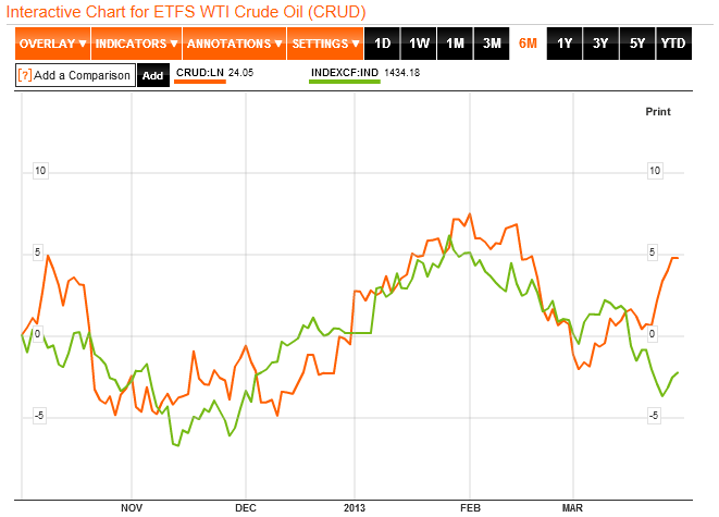 I think Copper is considered a better indicator of economic activity, and copper prices look very weak for the moment.