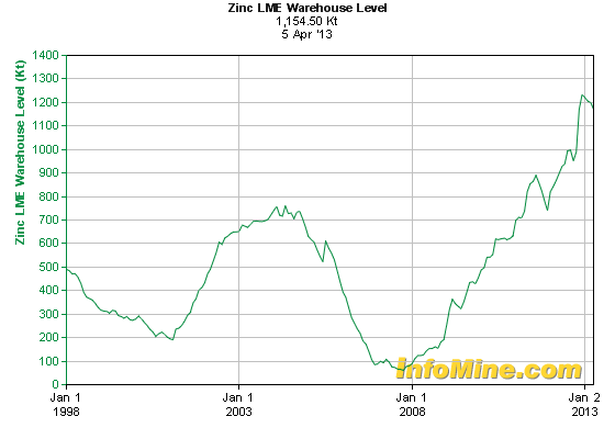 Both zinc and copper show increasing inventories. Both in notably different positions to 2008 when commodities made a big interim peak.