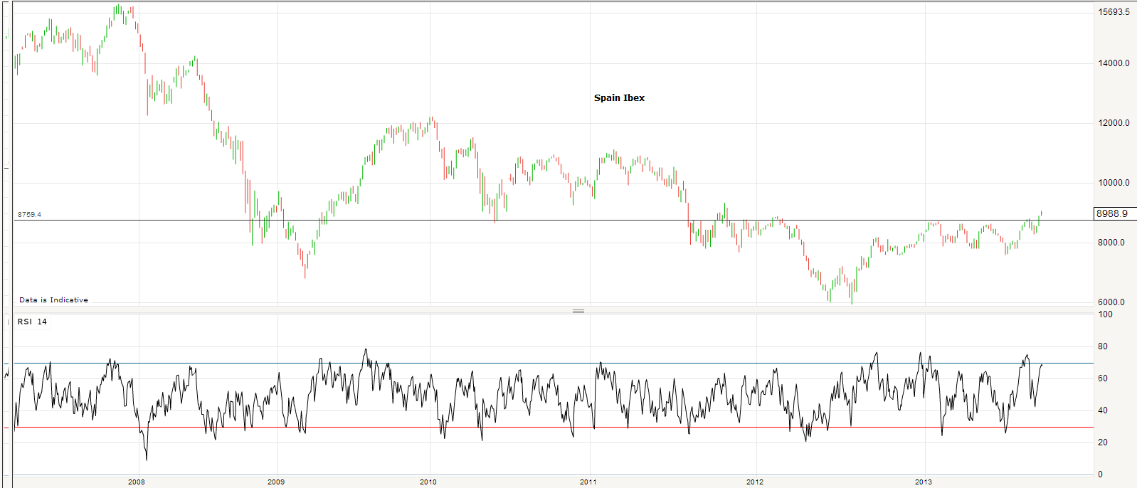 So is Japan a buy? Not all recent economic data has been supportive, but manufacturing and service PMIs are indeed in runs of positive growth, revealing underlying economic improvement. The Yen and Japanese bonds both dropped sharply following the launch of Abenomics but have since retraced some. However, the Yen now appears to have broken down out of a bear flag, whilst Japanese bond yields are shaping for a higher low and a potential push on from there. The Nikkei also consolidated following the big run up earlier in the year, but has now broken upwards out of two consolidation patterns shown: