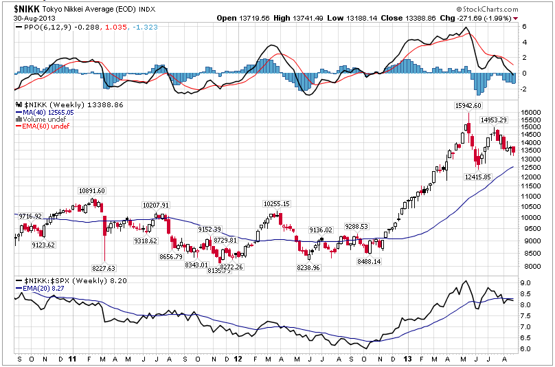 We are over 3/4 of the way through the year and my PnL is currently showing my worst year of performance to date since going full time, due to the run against commodities longs this year, particularly precious metals. This would repair itself if commodities did begin an uptrend in the last couple of months and now continue into year end, but it could yet go worse if they are in a bear market since 2011 and have further falls ahead. So I have decided to use the Autumn to do what I can to make sure of a good result by year-end. This means I am going to add shorter term trading to my game in this period, whilst running the more medium-term-focused global macro positions. Short trades are something I’ve done before, but not for some time due to success (and personal preference) with the longer term methods. So, I just wanted to share with you that this is what I’m going to be doing different. I am looking for liquid markets that I can play more aggressively for quick gains. So I am looking for candidates amongst the major markets that I can play confidently repeatedly either long or short (i.e. fundamentals/technicals align in favour of one way or the other), and this will include increasing exposure if movement goes the other way. One such play-thing is going to be the Nikkei on the long side, as mentioned above. I am going to pour over some other markets (stock indices, commodities, fx) to find others that I consider suitable, so will share when I decide. You may disagree with my choices and indeed the method, but I’m just sharing what I’m doing, and will let you know the results.