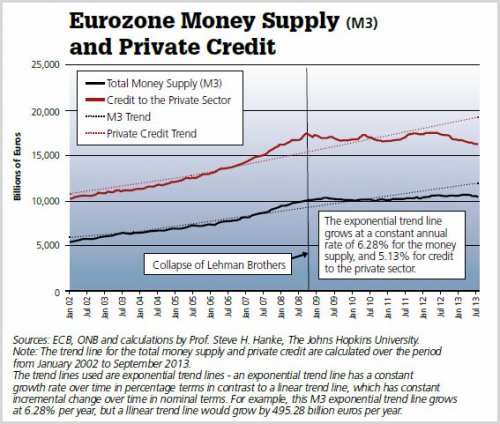 Chinese monetary trends also show a slowdown into 2014, whilst producer prices have been in deflation over the last twelve months. Add China to the European Union and the USA, and that’s more than half the world’s economy in a collective demographic downtrend, before including other similarly demographically challenged major countries such as Canada and Russia. I just don’t see how this won’t escalate into a global deflationary recessionary feedback looping. If Japan couldn’t achieve it when collective major economy demographics aside itself were positive in the 1990s, and we see similar developments in data above as occurred in Japan, then it would seem the world economy is destined to slip into a deflationary recession. A QE taper and fiscal consolidation as part of debt ceiling renegociation as we turn into 2014 could provide the extra momentum on that path in the US, whilst for Europe any additional interventionary measures may well be too late at this point (and are of questionable effectiveness anyway).
