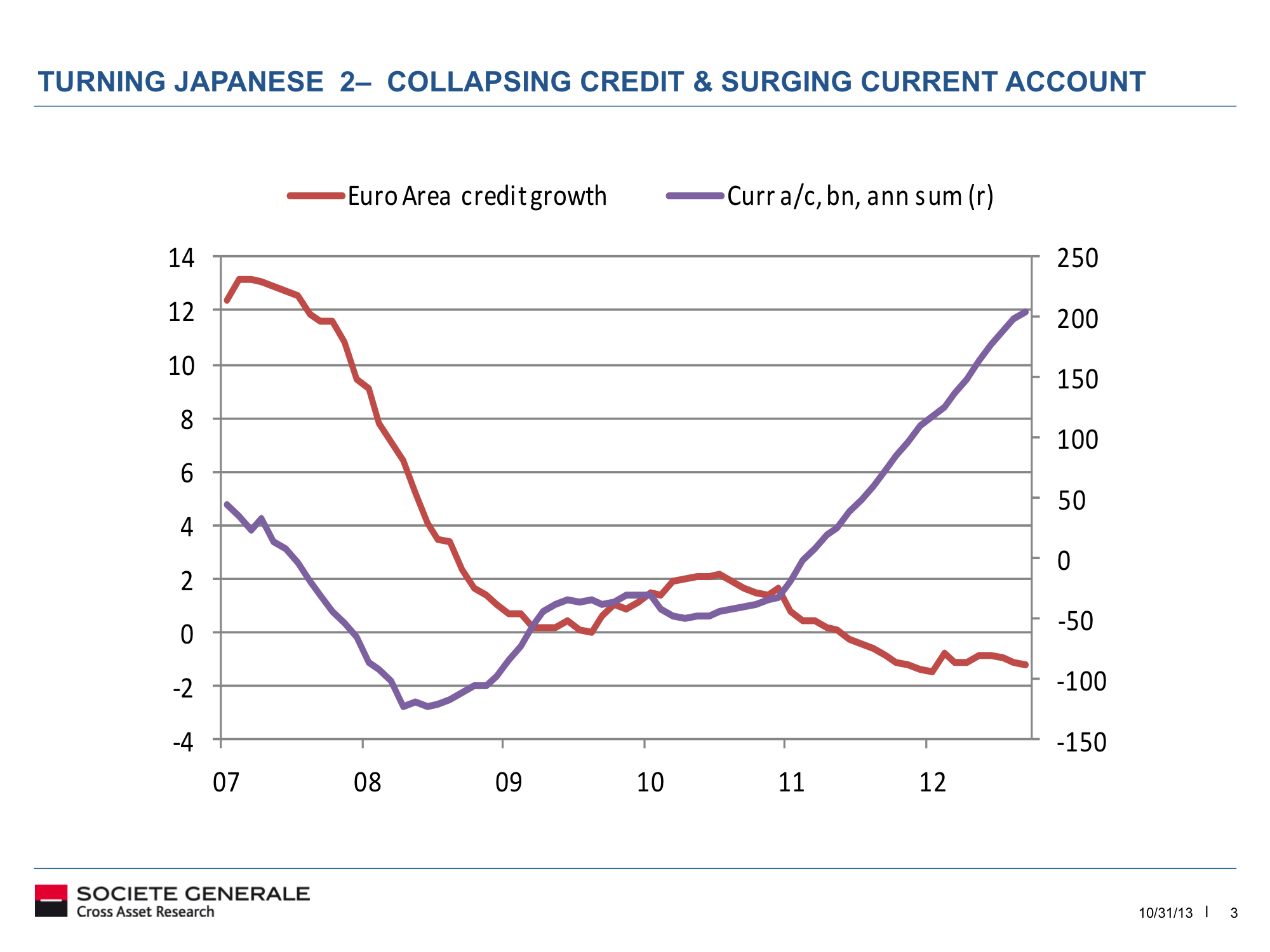 One is the starting point of a bubble in stocks and housing prices, i.e. excesses that needed washing out. We can identify something similar leading us into the current situation for US and Europe, with a stocks bubble in 2000 and a housing bubble around 2006.