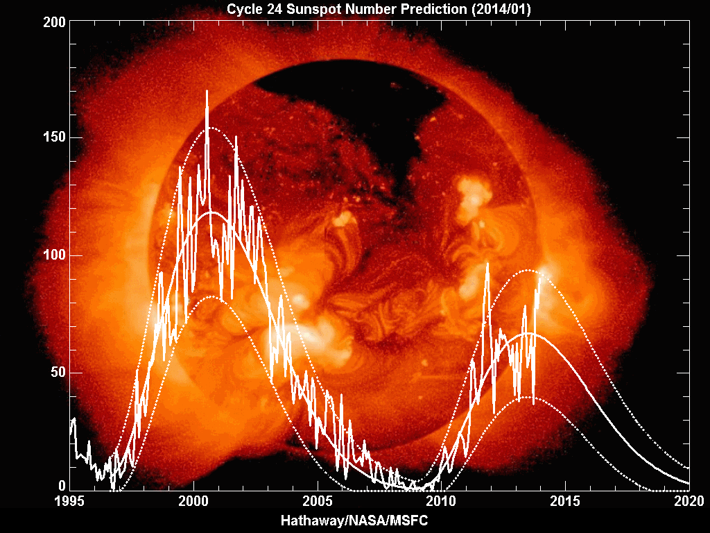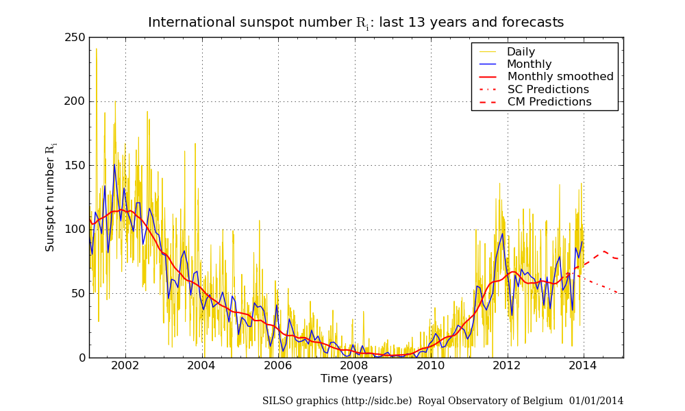 3. Thanks Kerry/Antonio for pointing it out. Magnetic pole shift coincides with increased solar activity. North pole switched May 2012, smoothed solar max to date Feb 2012. South pole Dec 2013, and we see the associated spike in sunpots recently, as per the two charts in the above post. So a busy sun at both flips, and cements the likelihood of the smoothed max turning out to be around one of them.
