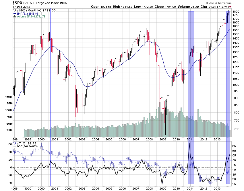 Such a drop from 52WK high to 70D low has occurred again in 2014. U Karlewitz has added the green dots to show that when these instances occurred there was some of kind of second low, before the rally to new highs.