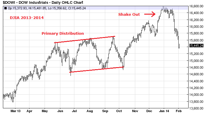 11. Drawing on the 1929, 1987 Dow and 1989 Nikkei analogies (see previous posts), the peak of the ‘second chance’ partial declines retrace (the last chance to exit longs and the optimum point to short) occurred around 28-30 trading days from the high in each case. From the 31 December 2013 highs in the Dow and Nikkei, that would take us to this Wed 12 February – Fri 14 February, as a guide.