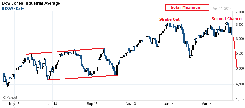 Recall that periods of heavy falls in the stock market have typically occurred in the inverted geomagnetic seasonal lows of March/April and October. This is April.