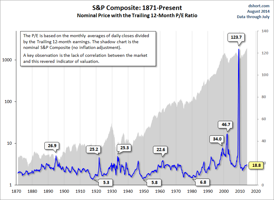 Firstly, trailing 12m p/e valuation. This chart clearly shows this measure is a rather useless tool, and can be disregarded: