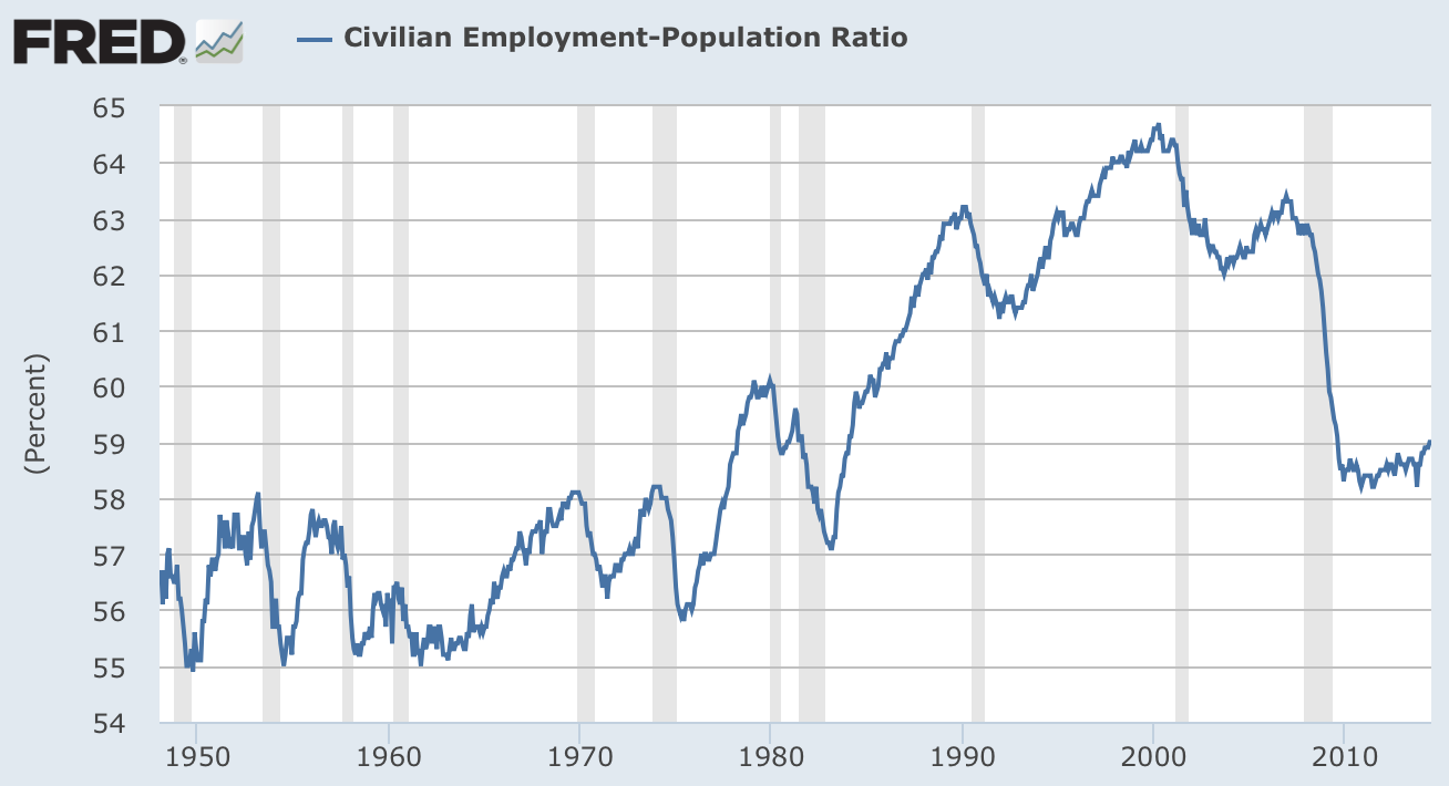I believe I can explain the mania of the last 18 months with the solar cycle. The sunspot maximum has driven the speculation to take US equities to these dizzy valuations and cast doubt on the secular bear progression since 2000, as the current bull has been given an exuberant last leg into 2014’s solar max (see my recent Last 18 Months post). However, now that we are through the smoothed solar maximum, the combination of valuations (CAPE, Crestmont, Q ratio and market cap to GDP) and demographics argue for a new bear market at hand within an ongoing secular bear to take us to the kind of washout valuations that 2002 and 2009 so far failed to deliver. Rather, we have stair-stepped our way down since 2000 in alternating cyclical bulls and bears, and we can see this in other economic measures: