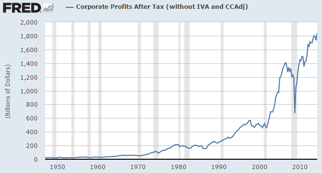 2. interesting that the spectacular earnings growth periods match periods of cheapening money and the floods of cash coming our either from declining banks reserves or newly printed $