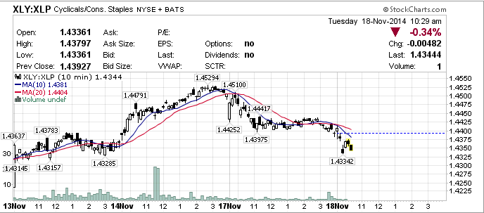 11nov14So, I’d like to see large intraday reversals / voluminous down candles on Apple and Microsoft and in turn the NDX as a sign of a peak.