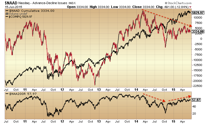 16junn8The SP500 also shows a strength (and breadth) divergence that mirrors the 2011 major peak.